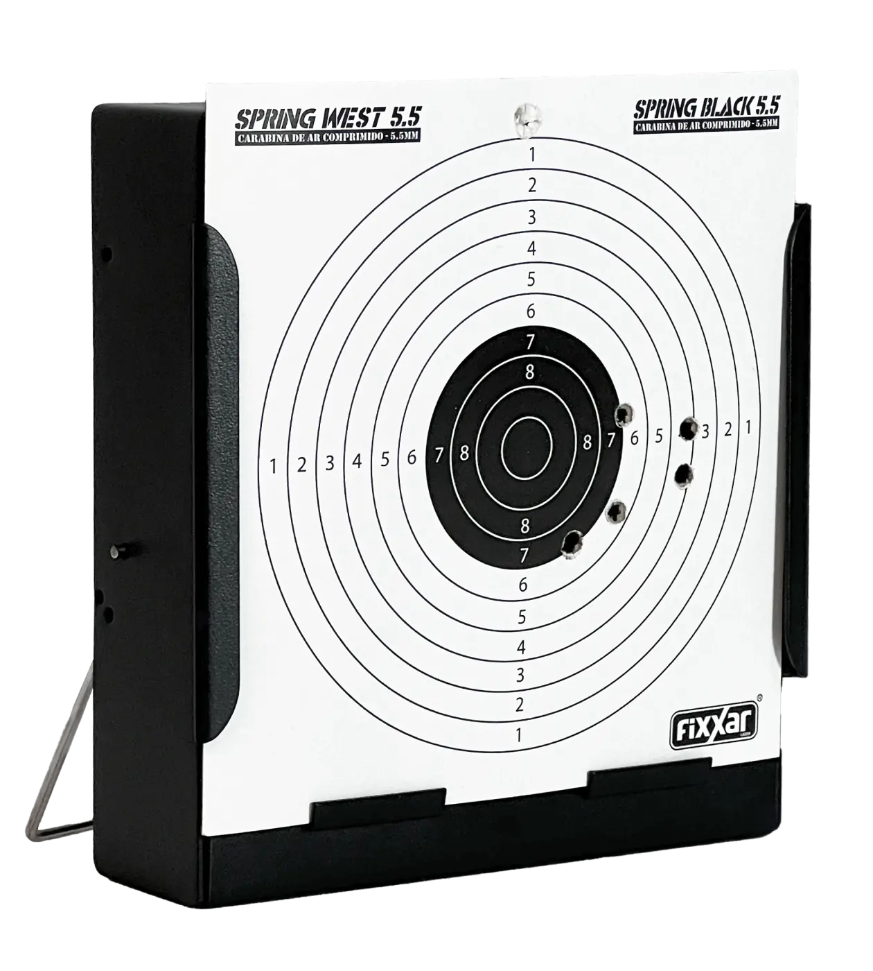 Com dimensões de 27 x 20,5 x 34,5 cm, o alvo apresenta um formato que equilibra visibilidade e praticidade, favorecendo a instalação e a leitura do impacto a distâncias diversas. A espessura de 2,5 mm dos alvos contribui para a sensação de robustez e para a durabilidade geral do conjunto, completando um projeto pensado para proporcionar treinos contínuos, eficientes e confiáveis.
