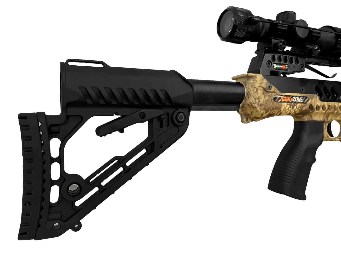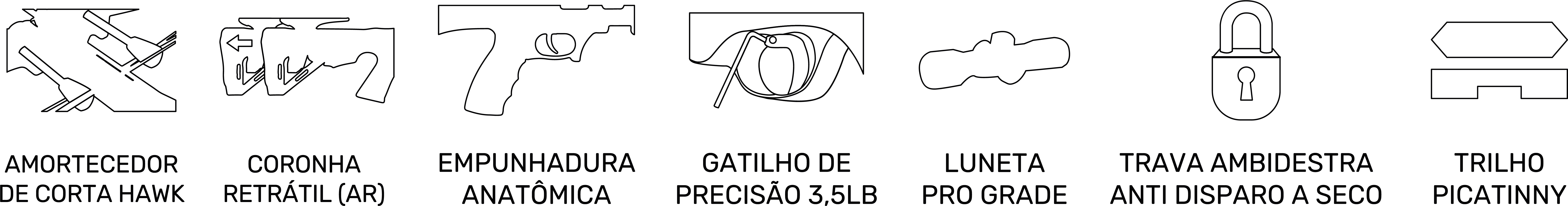 A coronha ajustável do tipo AR oferece conforto e versatilidade, permitindo que você encontre a posição perfeita para cada tiro. O gatilho de precisão de 3.5lbs garante disparos suaves e controlados, proporcionando uma experiência de tiro sem igual.