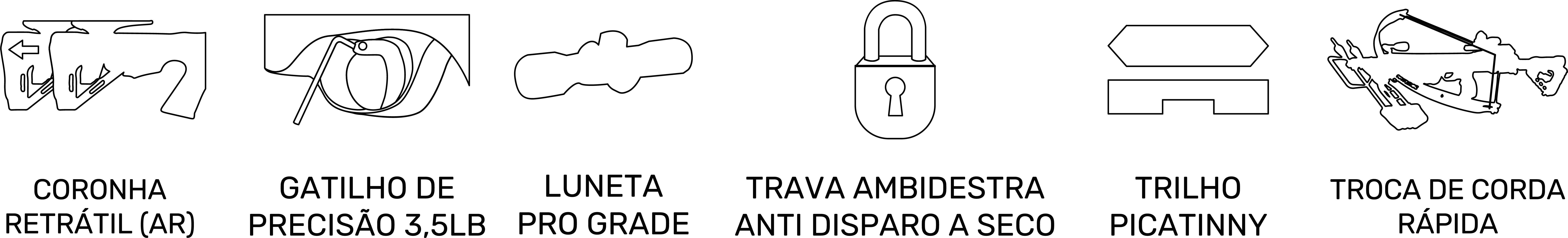O modelo conta com empunhadura anatômica, trava de segurança anti disparos a seco, zarelho para bandoleira e trilho Picatinny de 20 mm, permitindo conforto, segurança e a adição de acessórios. Acompanhando a balestra, vem luneta 4x32, quiver, duas setas, corda para armar e cera lubrificante, compondo um kit completo para uso imediato.