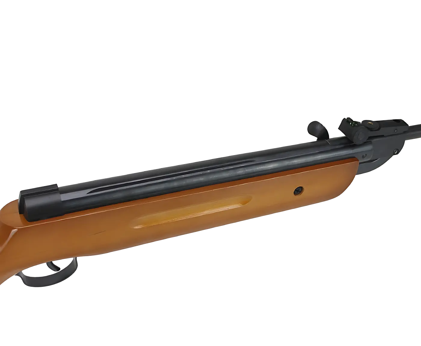 A FXR apresenta a Spring Tucson 5,5 mm, uma carabina de entrada com bom custo-benefício para iniciantes. Construída com mecânica inteiriça em aço oxidado e cano raiado de 48 cm, oferece maior precisão em disparos. Traz coronha em madeira envernizada, propulsão por mola de aço helicoidal e velocidade de até 500 fps, variável conforme munição e condições. Possui gatilho totalmente metálico e sistema de quebra do cano Easy Open para operação prática. O conjunto de pontaria tem fibra óptica (alça ajustável e massa protegida) e trilho superior de 11 mm para luneta ou red dot.