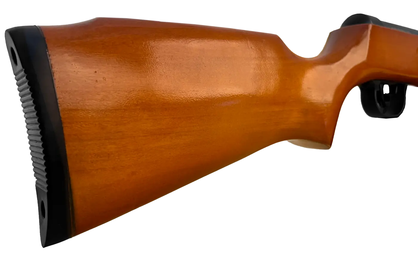 Produzida com mecânica ínteira em aço e coronha em madeira envernizada, prioriza custo/benefício e durabilidade.