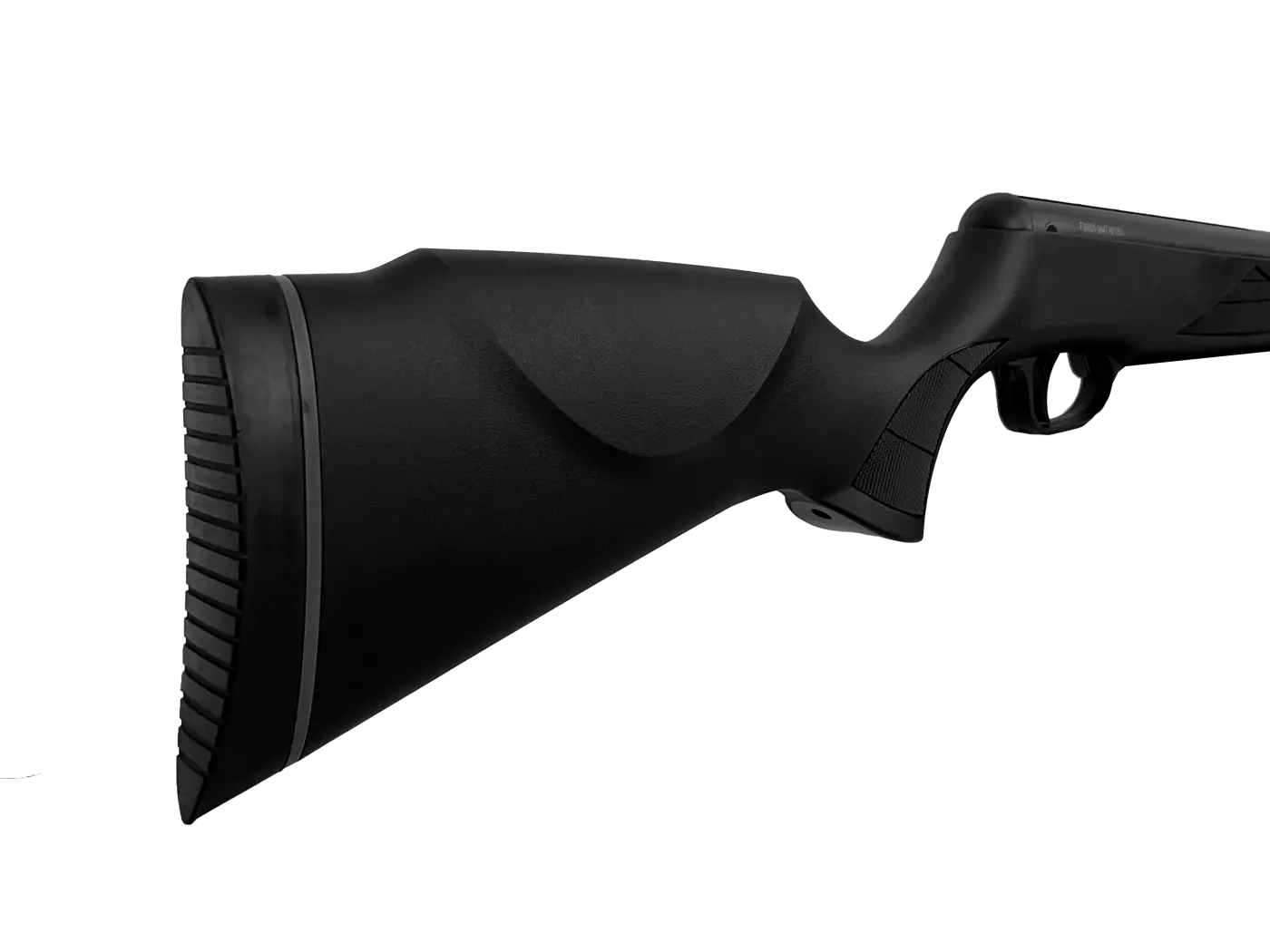 Possui apoio de bochecha para uma visada mais rápida e mais conforto na posição de tiro.