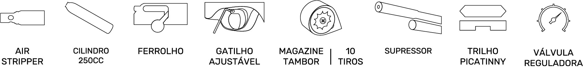 Além disso, o supressor integrado e o Airstriper garantem um disparo suave e silencioso, minimizando o ruído e mantendo a precisão.