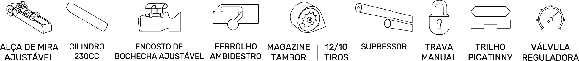 Essas carabinas incorporam avançadas tecnologias que conferem potência aprimorada, precisão excepcional, autonomia de tiro ampliada e uma capacidade de disparo notável. O modelo T-Rex, em particular, destaca-se como uma carabina multishot, com um magazine com capacidade para 12 chumbinhos.