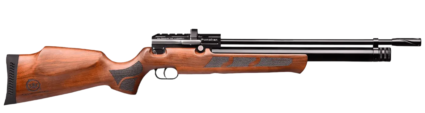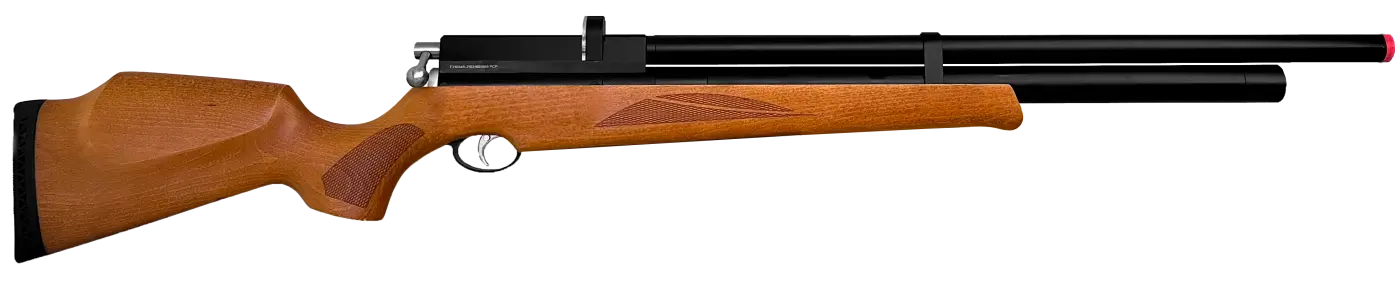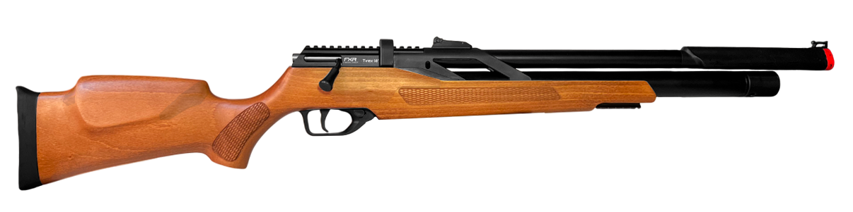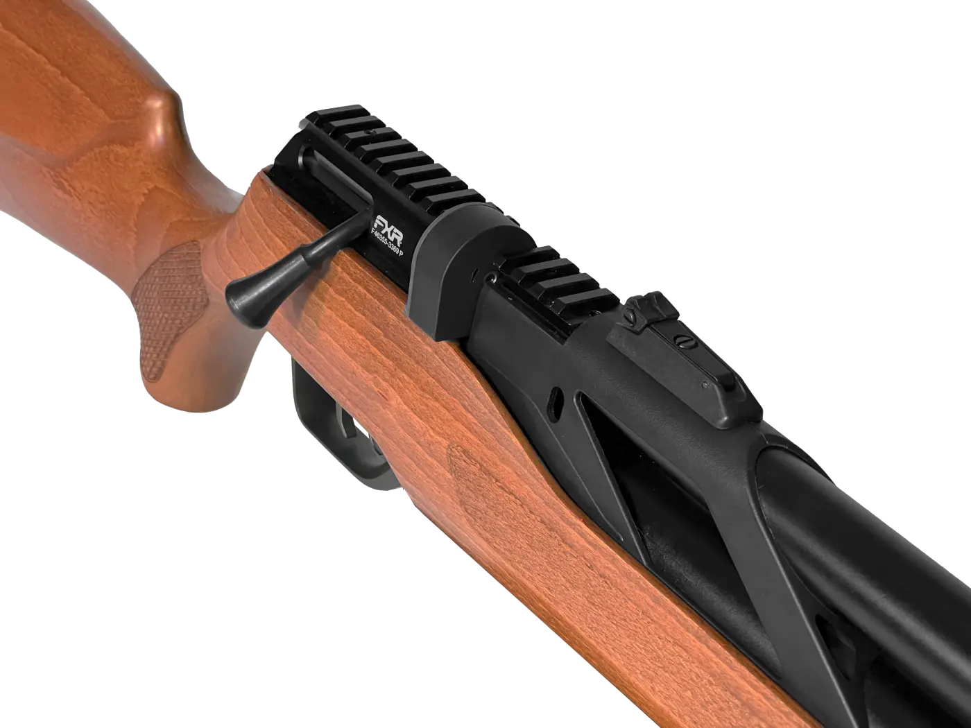 O modelo Wood é equipado com coronha de madeira, atendendo aos atiradores que apreciam uma coronha clássica em madeira.