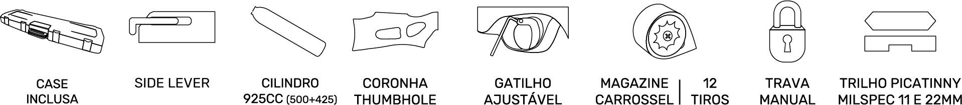 Isso se dá pelo fato da carabina já ser equipada de fábrica com 2 cilindros de ar resultando em 925cc de capacidade e autonomia para mais de 100 disparos.