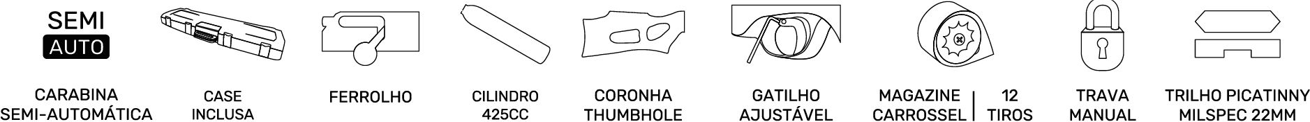 Possui cano longo micro-raiado de precisão, coronha em polímero com thumbhole para melhor empunhadura, encosto de bochecha ajustável e soleira emborrachada.