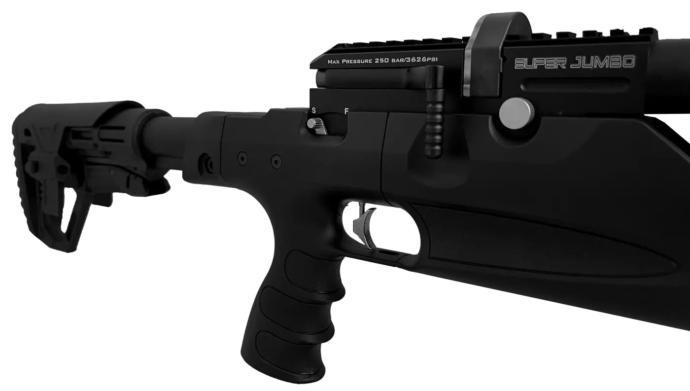 O modelo Super Jumbo, somente pelo nome já indica que a carabina possui todas as características necessárias para ser um equipamento top de linha.