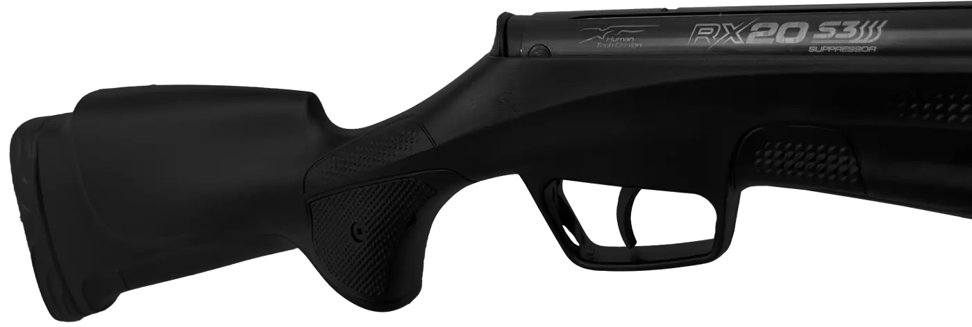 Stoeger RX20 Suppressor é uma carabina que foi projetada para ser ótima para empunhar e disparar. Devido a sua tecnologia HUMAN TECH DESIGN™, a linha RX une três sólidos conceitos: ergonomia funcional, estudo de interação do usuário e experiência do usuário. Os modelos Stoeger que possuem a tecnologia RX representam a combinação perfeita entre todos os detalhes da coronha para tornar o tiro perfeito. Contando com o PRO ADAPTIVE CHECKERING™, zigrinado mais versátil, eficiente e progressivo, desenvolvido até agora – único no mercado – os atiradores se expõem à uma nova experiência, unindo-se à carabina e encontrando a sensação perfeita com ela. A progressão especial do zigrinado “encaixa” de forma ativa e confortável na arma, não importando o ambiente em que os atiradores se encontrem.