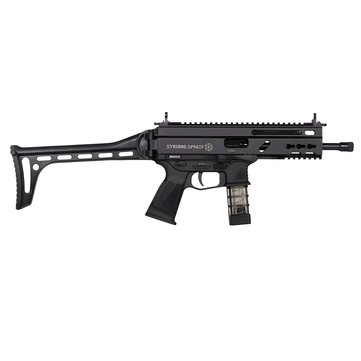 A Grand Power Stribog SP9 A2 é uma carabina PCC 9 mm de fabricante europeu selecionada, precisa, de baixo relevo e voltada para o uso policial, defesa e tiro esportivo. Conta com cano de 8" com quebra-chamas, coroa rebatível para maior mobilidade e vem com dois carregadores de 20 e 30 tiros. Dispõe de trilhos superior e inferior de 20 mm e laterais Keymod para montagem de red dots, lanternas, lasers e grips. Opera em ação semiautomática com gatilho Single Action leve (15–18 N), sustentando disparos precisos. Tem superior em aço carbono com ponta do ferrolho à esquerda, moldura em polímero de alta densidade e acompanha case rígido.