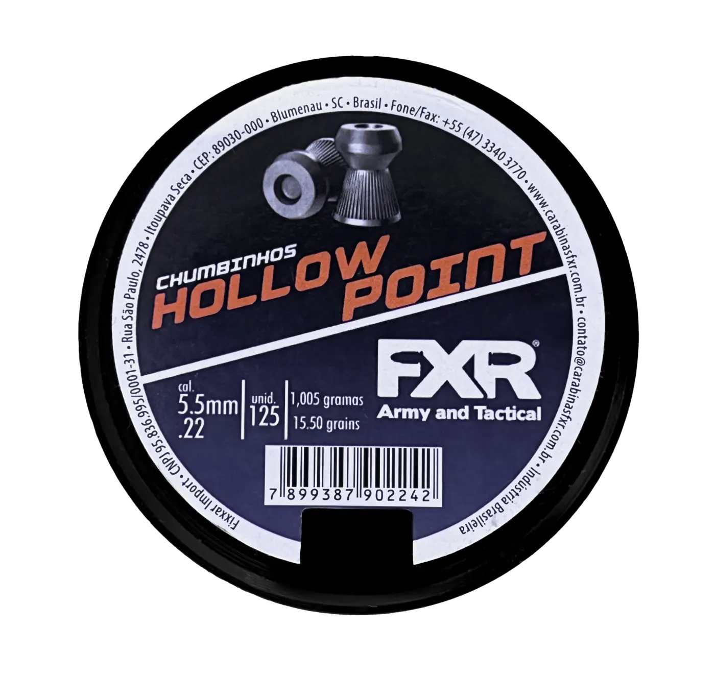 Chumbinho FXR Hollow PointFoi desenvolvido para quem procura uma munição para sua arma de pressão que seja boa e com excelente custo benefício.