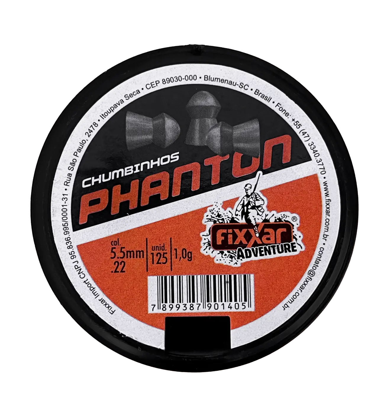 O modelo Phanton é o coringa dos chumbinhos FXR. Ele possui a cabeça redonda e foi projetado para desempenhar quase todos os objetivos, desde tiro informal, tiro em papel, tiro em madeira, tiro em lata, etc.