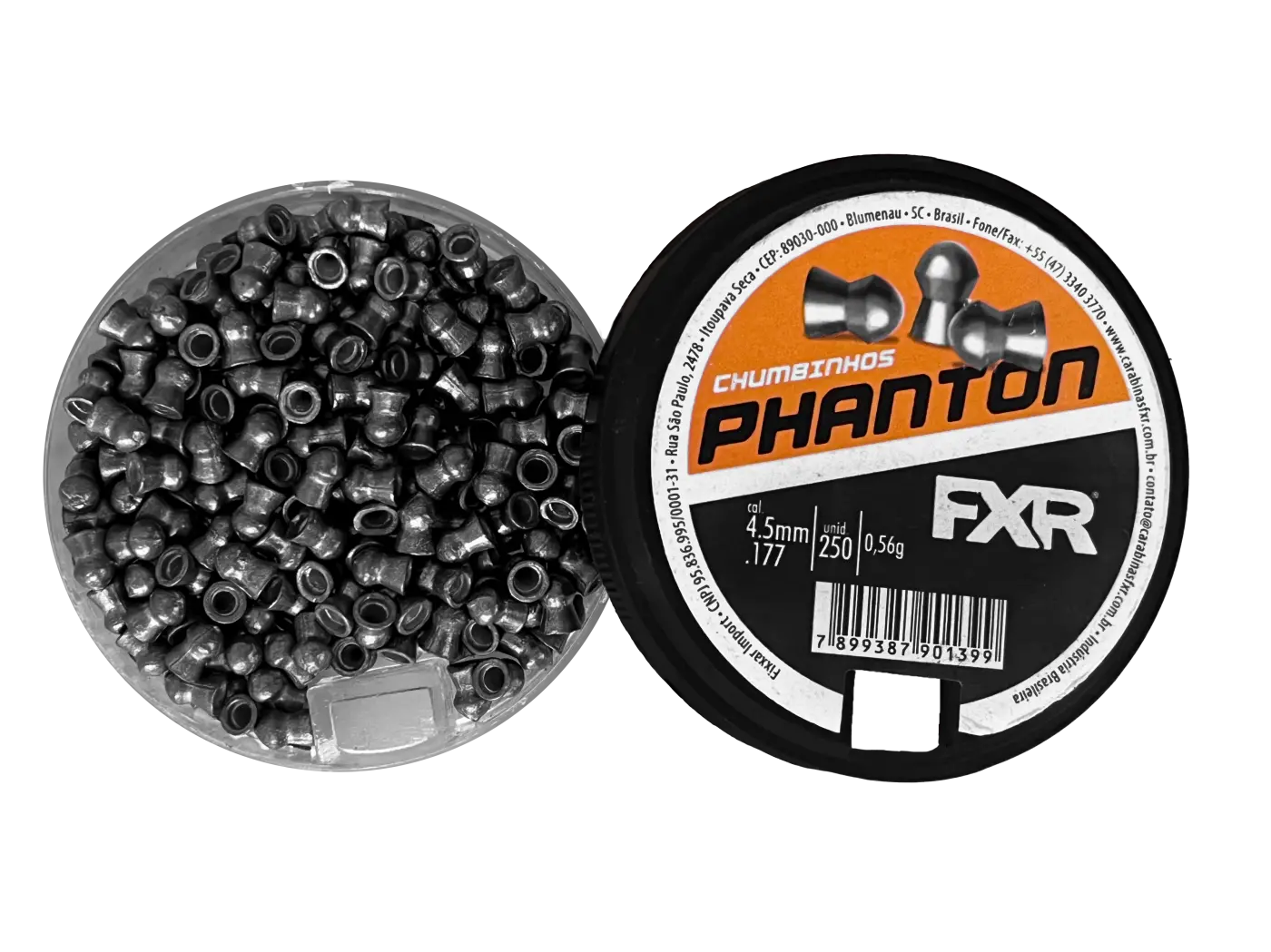Peso de 0.48g (7.4gr) no calibre 4.5mm. Lata com 500un.