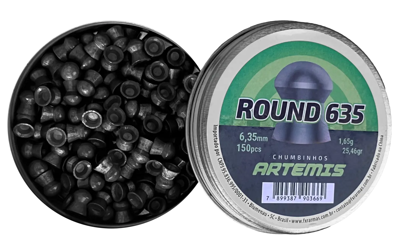 Peso de 0.83g (12,81gr) no calibre 5.5mm. Lata com 250un.