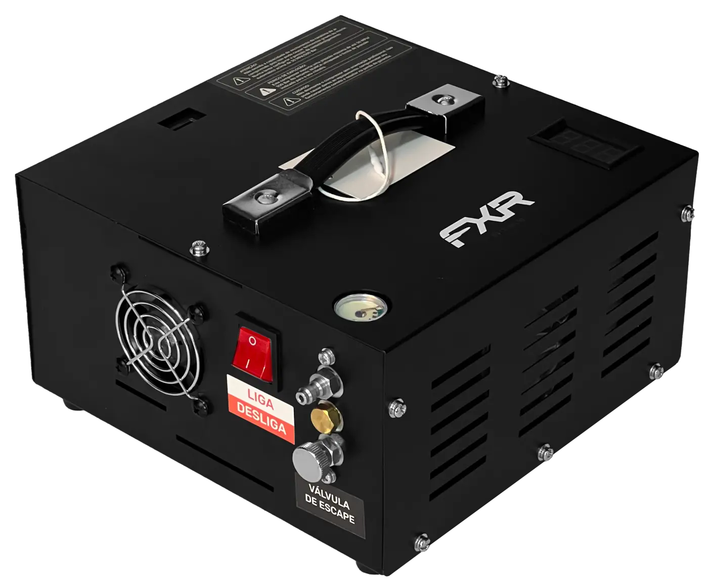 O Compressor FXR Trivolt Auto-Stop com 2 coolers é a versão atualizada do modelo anterior, trazendo ainda mais eficiência no sistema de refrigeração. Agora equipado com dois coolers integrados, evita o superaquecimento durante o uso e garante maior durabilidade e segurança no processo de recarga.Com a função Auto-Stop, o usuário pode definir a pressão exata em que o compressor será desligado automaticamente, oferecendo praticidade e proteção ao equipamento. Compacto, leve e fácil de transportar, é ideal para recarregar carabinas e pistolas PCP com cilindros de até 1 litro, atingindo pressão de trabalho de 300 bar/4500 psi/30 mpa.
