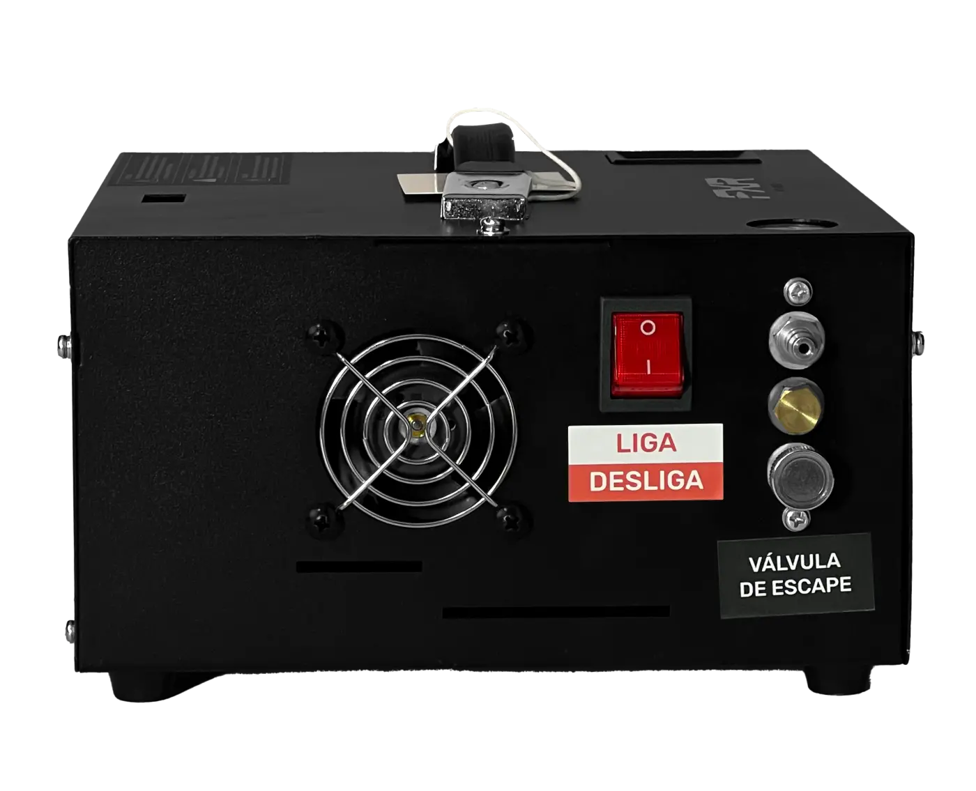 O Compressor PCP Portátil FXR modelo Compact New foi desenvolvido para oferecer praticidade e eficiência no enchimento de cilindros de ar de carabinas PCP. Portátil e fácil de transportar, é a solução ideal para atiradores que buscam autonomia sem abrir mão de desempenho. Equipado com conversor interno, pode ser conectado tanto à bateria de carro 12V quanto diretamente à rede elétrica 110/220V, garantindo versatilidade no uso.Com pressão máxima de 4500 psi (300 bar), é capaz de encher cilindros de qualquer carabina PCP, entregando uma taxa de carregamento de 0,5L em apenas 20 minutos. Conta ainda com sistema de refrigeração por ventilador integrado, que assegura maior durabilidade e segurança durante a operação.