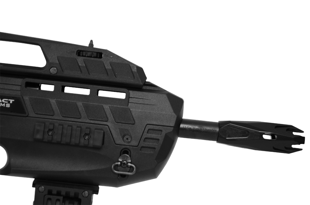 A Kral Compact Black é uma espingarda semi-automática da KRAL ARMS com design futurista e imponente, equipada com carregador traseiro que facilita a troca sem perder a empunhadura. Sua coronha Bullpup sintética torna a arma compacta, enquanto o receiver em alumínio aeronáutico anodizado garante resistência e durabilidade. Disponível em calibre .12 GA, possui cano de 18,5” e comprimento total de 47 cm, com câmara de 3" compatível com cartuchos Magnum e capacidade de 2+1, 5+1 ou 8+1 cartuchos. Conta com seletor de tiro tipo AK, alça e massa de mira flip-up ajustáveis, trilhos 20mm e zarelho para bandoleira. Acompanha case rígido, kit de limpeza e hand guard, podendo os acessórios variar sem aviso prévio.