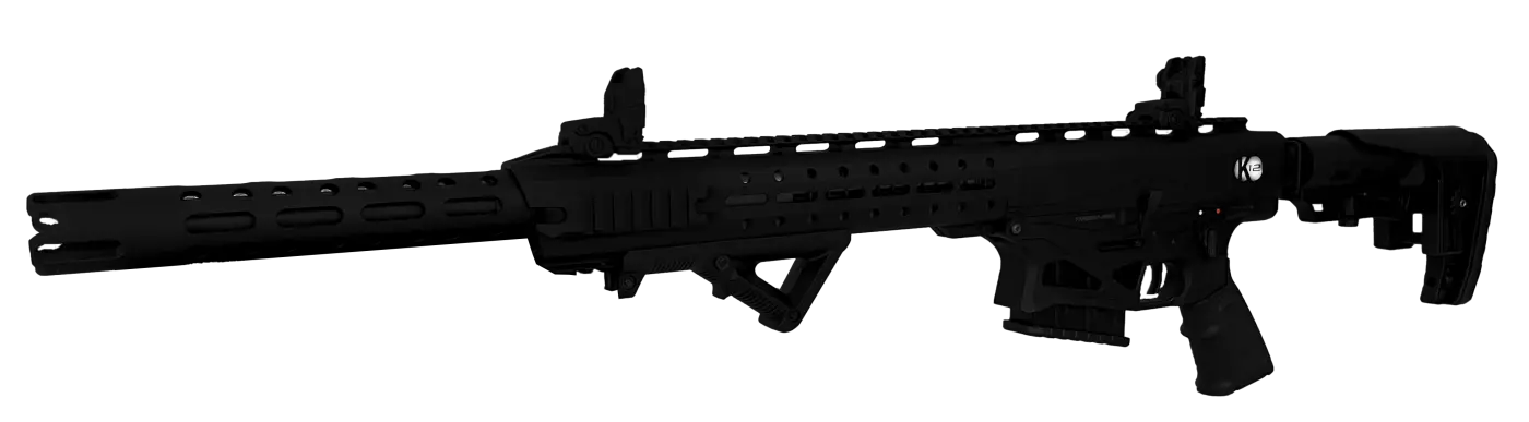 A espingarda Kral K12 é uma arma tática semi-automática de alta tecnologia, inspirada em plataformas AR e AK, permitindo a instalação de acessórios como lanternas, miras e bipés. Possui coronha retrátil em polímero ajustável, empunhadura anatômica tipo pistol grip e receiver em alumínio aeronáutico anodizado. Disponível no calibre .12GA, com cano de 18,5” e capacidade variável de 2+1 a 8+1 cartuchos, compatível com cartuchos Magnum. Seu seletor de tiro é tipo AR, alça e massa de mira flip-up ajustáveis, e conta com trilhos 20mm superiores, laterais e inferiores. Acompanha case rígido, kit de limpeza, front grip, trilhos, bandoleira e três carregadores, sendo recomendada carga mínima de 28g para desempenho ideal.