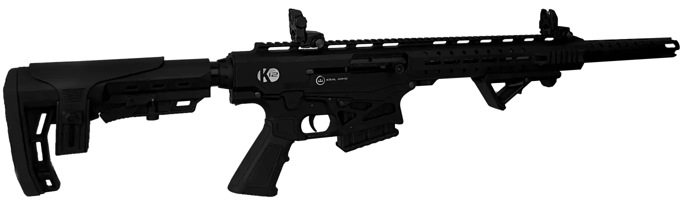O modelo K12 faz parte de uma linha de espingardas Kral que utilizam plataforma de fuzil AR e AK. Este modelo tático inspirados nos rifles M4 permite a instalação de vários acessórios como lanternas, miras, bipés, front grips e etc, além de possuir um design imponente.