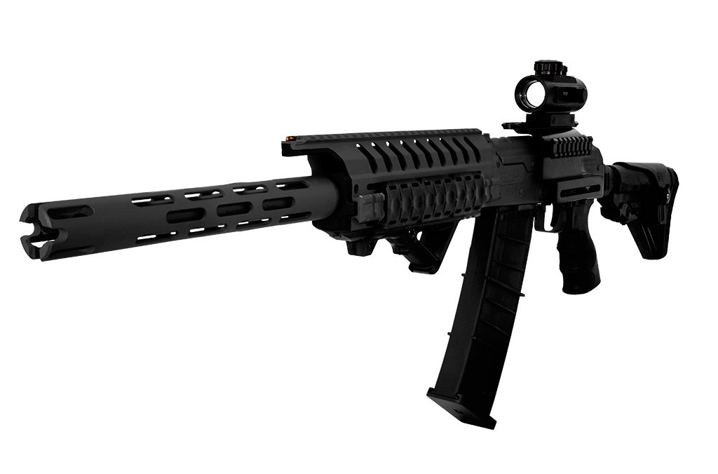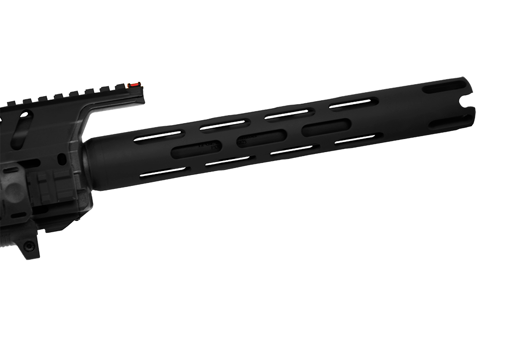 Possui trilhos 20mm superior, lateral e inferior para acessórios e acompanha case rígido, kit de limpeza, front grip, trilhos, bandoleira, red dot e três carregadores, sendo os acessórios sujeitos a alterações.