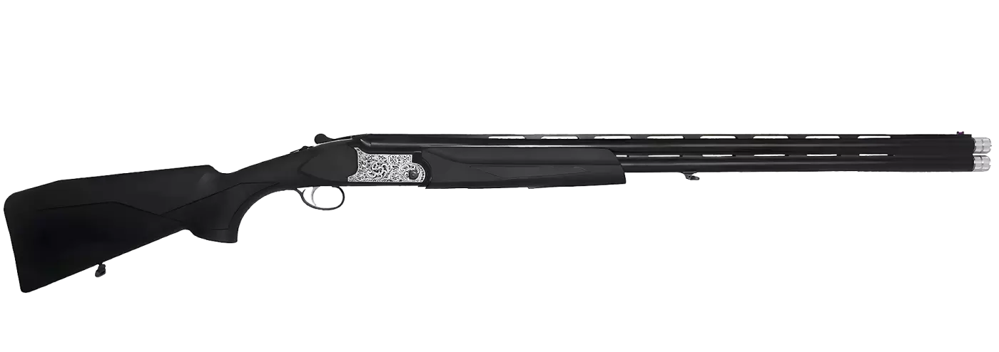 Cano de 30" e comprimento total de 122 cm; receiver em alumínio anodizado com inscrições a laser e acabamento Black; seletor de cano com trava integrada e acionamento de gatilho automático (duplo pulso).