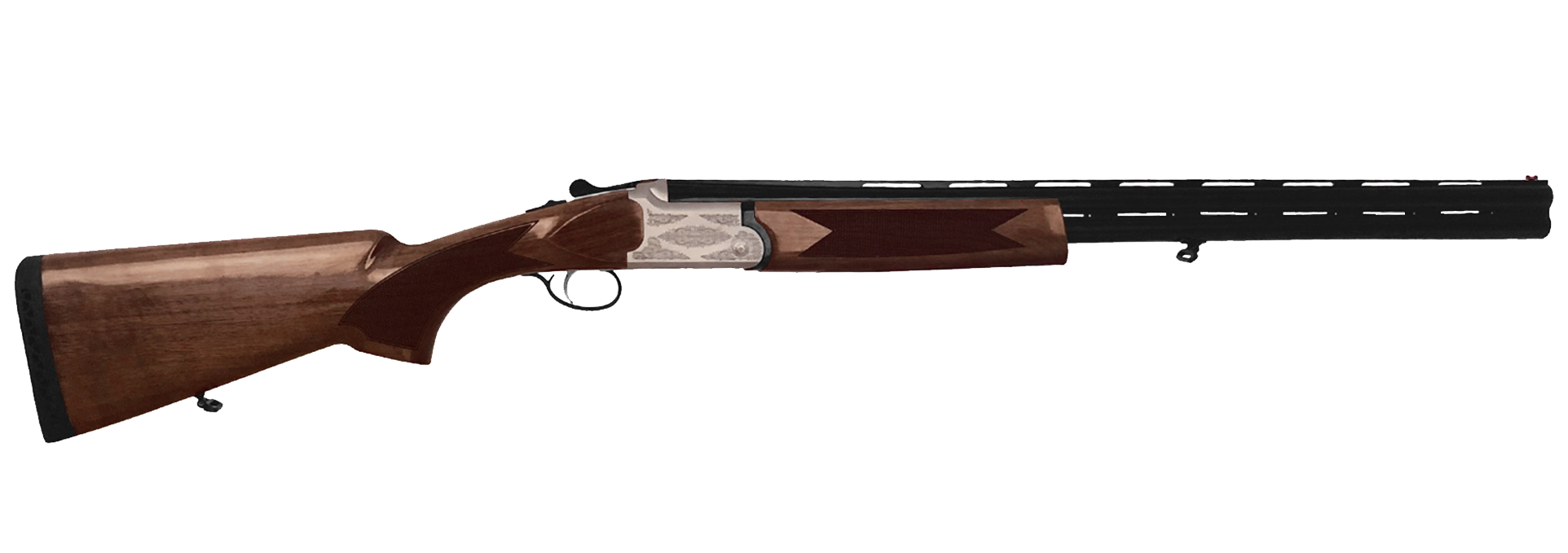 Leve e robusta, pesa 3,2 kg; calibre .12GA com câmara de 3" (compatível com cartuchos Magnum) e capacidade para 2 tiros em ação por repetição com extração manual.