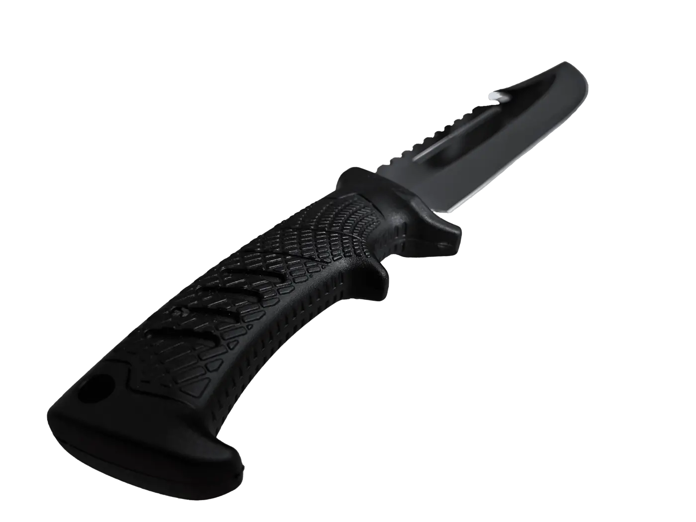 Com empunhadura anatômica em polímero, esta faca oferece conforto e segurança durante o uso, mesmo em condições adversas.