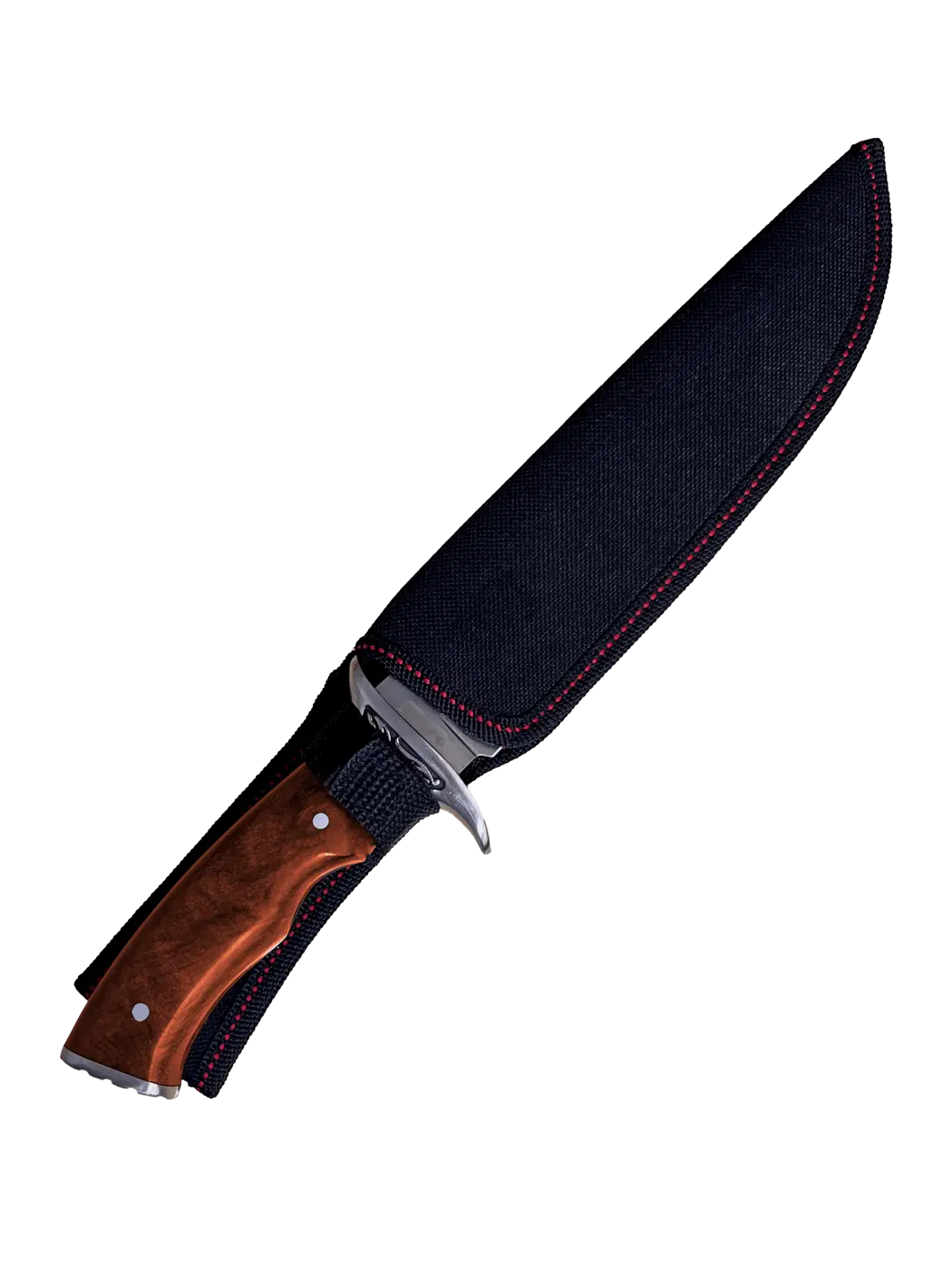 Com empunhadura anatômica em madeira Rosewood, esta faca proporciona um toque elegante e um manuseio confortável, tornando-se um item indispensável para os amantes de atividades outdoor e caça.