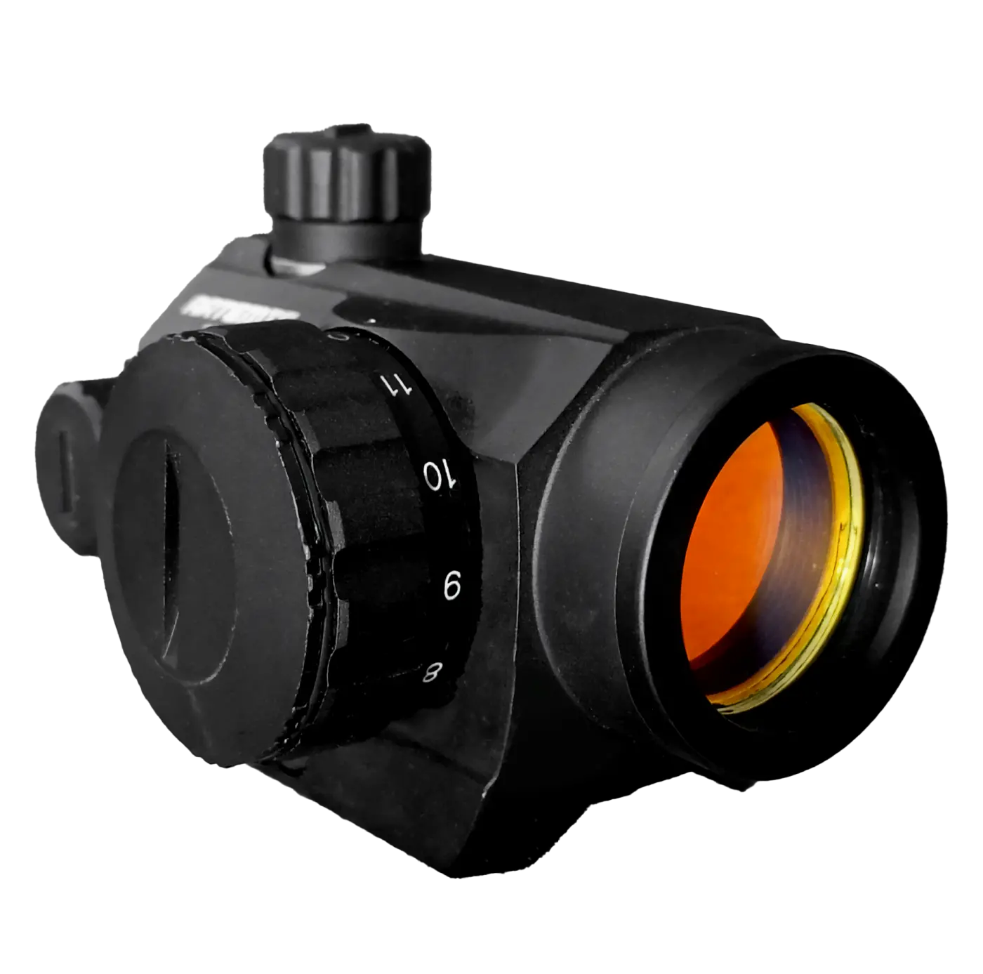 As torres de ajuste rápido permitem correções ágeis de elevação e deriva durante a prática esportiva, tornando as regulagens mais práticas em campo. Acompanha suporte reforçado de 22 mm para fixação estável ao trilho da arma, assegurando montagem firme e confiável mesmo em uso intenso.