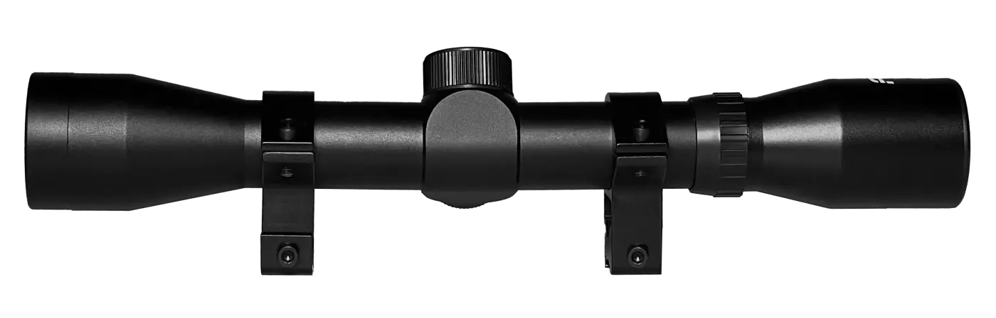 Conta com selagem a nitrogênio, objetiva de 40 mm, zoom ajustável de 3–9x e torres para regulagem horizontal e vertical.