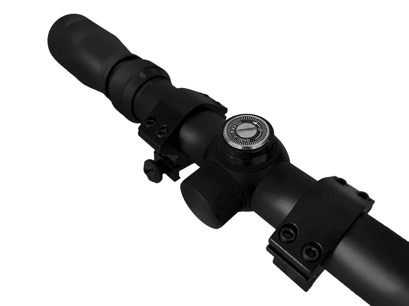A luneta vem acompanhada de mounts compatíveis com trilhos de 11mm ou 22mm, garantindo ampla versatilidade e compatibilidade com uma variedade de carabinas.