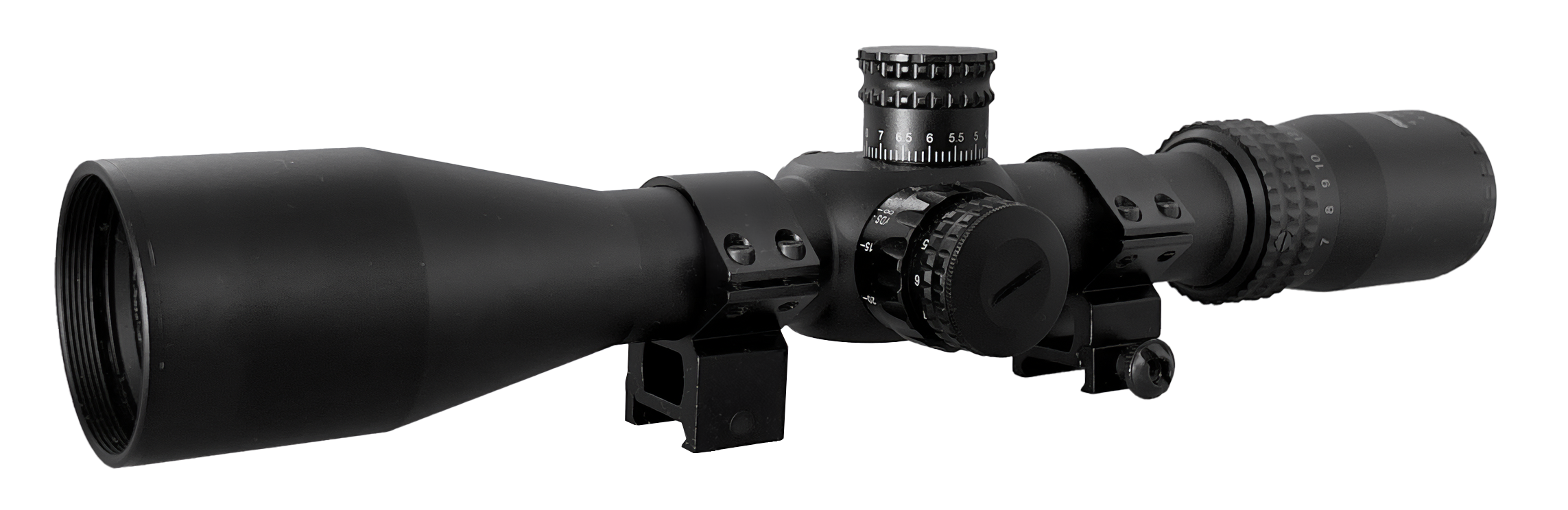 Projetada em primeiro plano focal (FFP), o retículo mil-dot aumenta proporcionalmente ao ajuste do zoom, facilitando cálculos de compensação e correções em qualquer ampliação. O retículo é gravado na lente para maior resistência a impactos e vibrações, e conta com iluminação do tipo short-dot, oferecendo visada eficiente tanto em ambientes claros quanto em condições de baixa luminosidade.