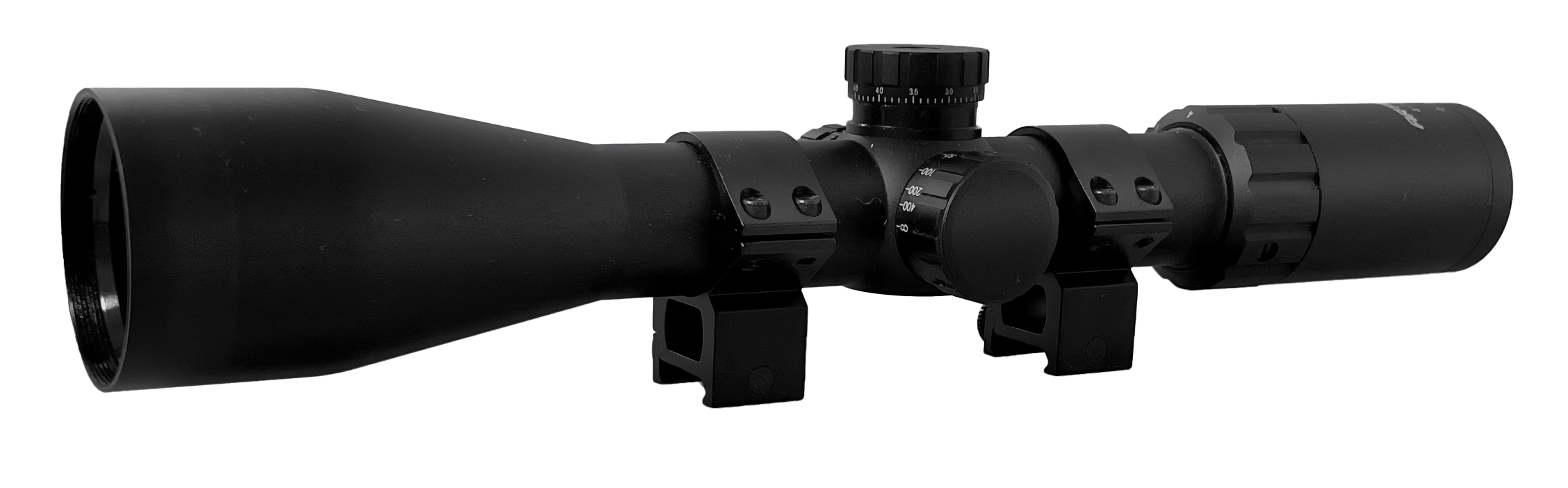 A luneta conta com ajuste lateral de paralaxe, assegurando foco perfeito independentemente da distância do alvo, e torres de regulagem rápida de padrão militar, que permitem correções ágeis de elevação e deriva durante o tiro. A objetiva capta mais luz, proporcionando imagens claras e nítidas, enquanto o suporte reforçado de 22 mm garante estabilidade e segurança na fixação ao trilho da arma.