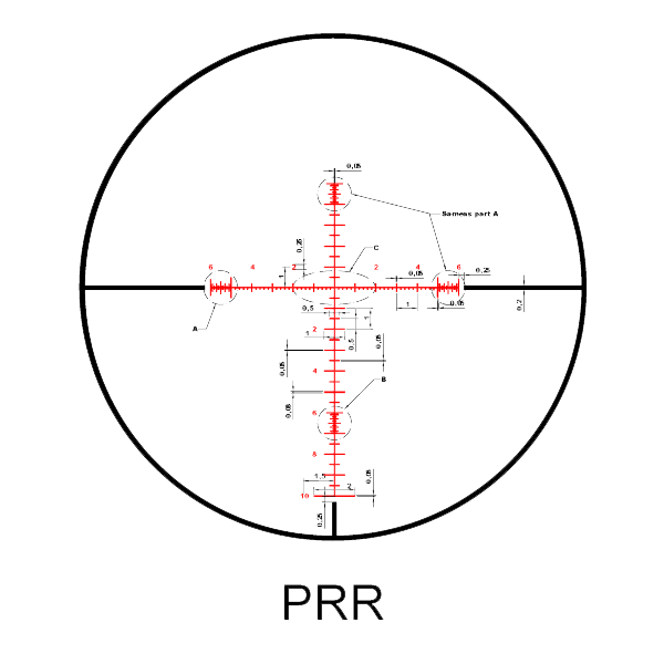 Retículo PRR Gravado na Lente: O retículo PRR gravado na lente oferece baseado em mil da Nikko Stirling é ótimo para entusiastas de longo alcance e permite compensação de queda e localização de alcance rápida e fácil.
