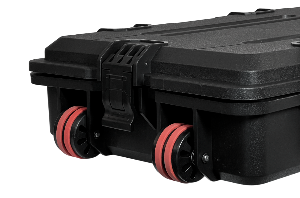 O modelo conta com válvula automática de equalização de pressão, que equilibra a pressão interna sem permitir a entrada de água, protegendo tanto a estrutura do case quanto o equipamento interno. Para facilitar o transporte, dispõe de alças dobráveis lateral e superior, além de rodas silenciosas e resistentes ao desgaste, ideais para deslocamentos longos.