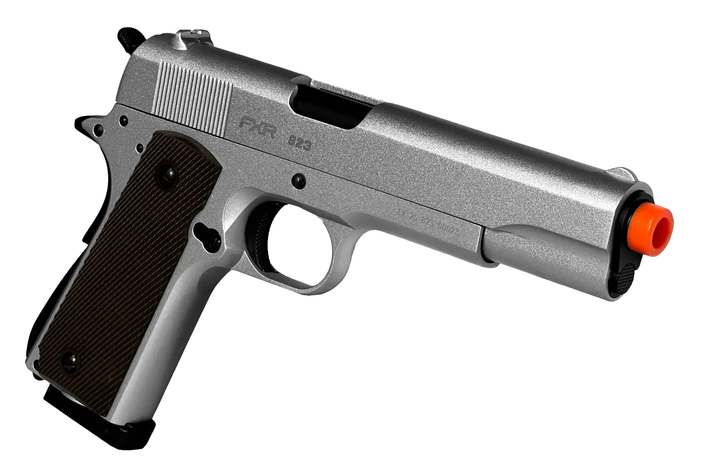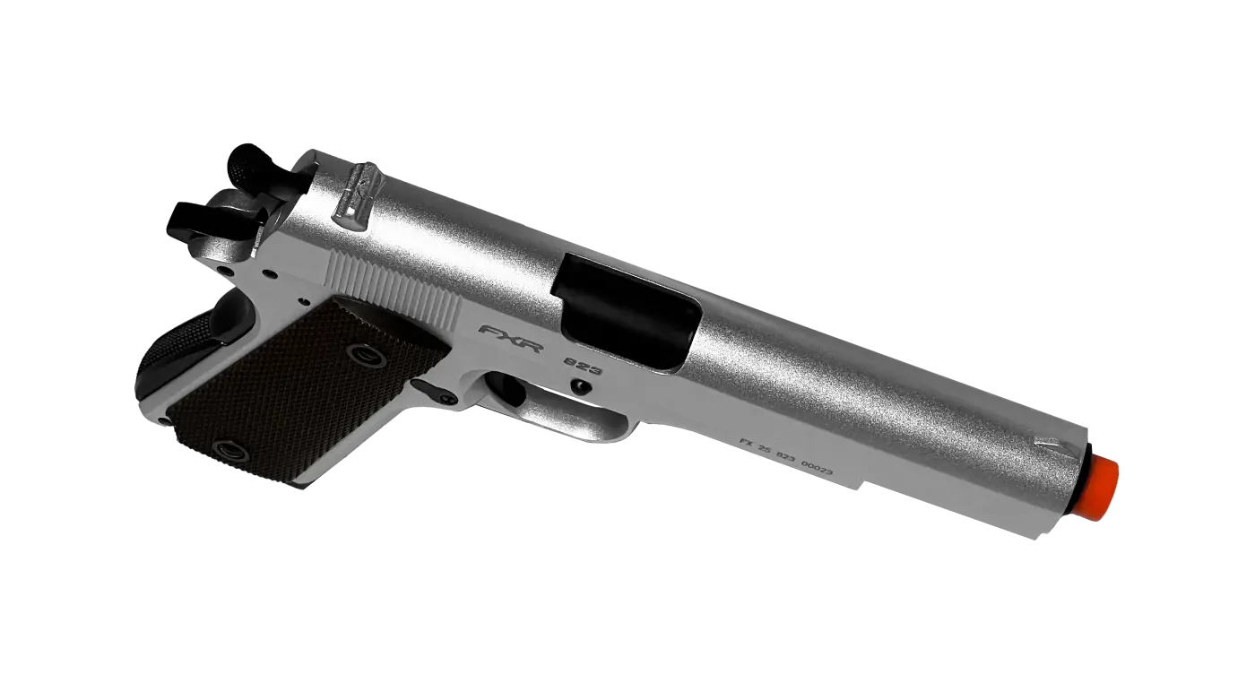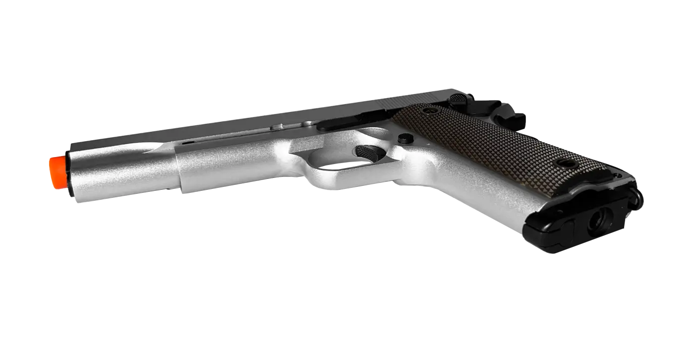 A Pistola Airsoft Double Bell CO2 823 1911 Blowback na cor prata é um modelo que combina realismo, robustez e excelente desempenho, ideal para praticantes de airsoft que valorizam fidelidade estética e funcionamento confiável.Inspirada na plataforma 1911, essa pistola conta com sistema GBB (Gas Blowback), que proporciona recuo realista do ferrolho a cada disparo, elevando a experiência de uso. Sua construção full metal garante maior durabilidade, peso equilibrado e sensação sólida nas mãos.