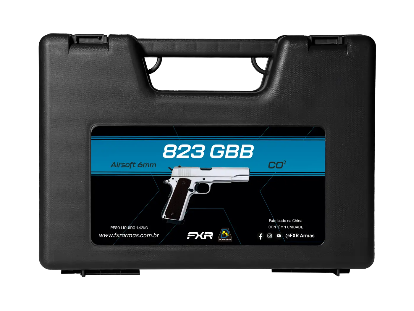 A Pistola Airsoft Double Bell 823 1911 CO2 Blowback prata une realismo, robustez e bom desempenho. Inspirada na plataforma 1911, possui sistema blowback com recuo realista, construção full metal e excelente sensação de uso. No calibre 6mm, alcança cerca de 330 FPS com BBs 0,20g, opera em modo semi-automático e conta com hop-up ajustável para maior precisão. Dispõe de travas funcionais, miras fixas, magazine para 24 BBs e acompanha maleta rígida para transporte e armazenamento.