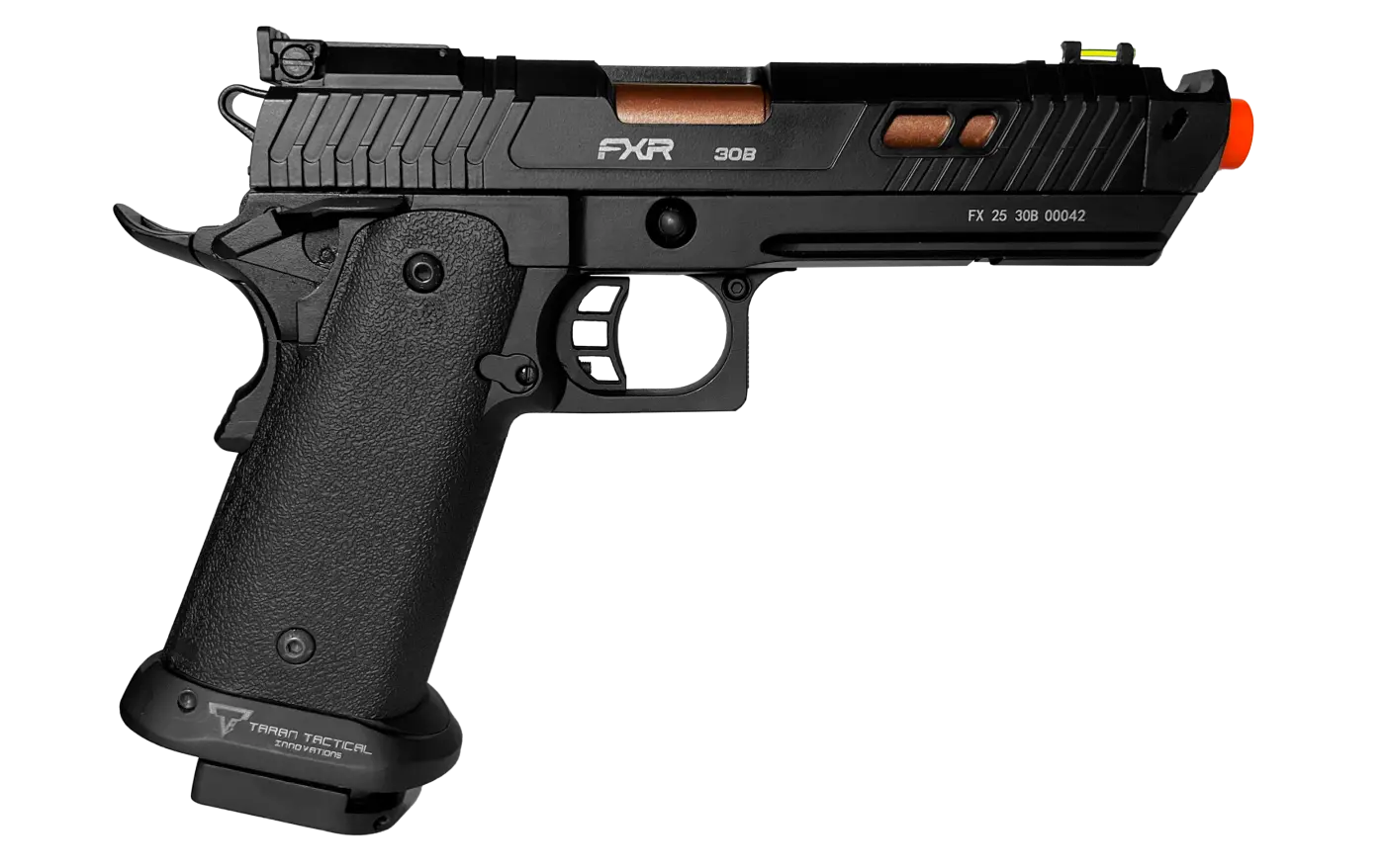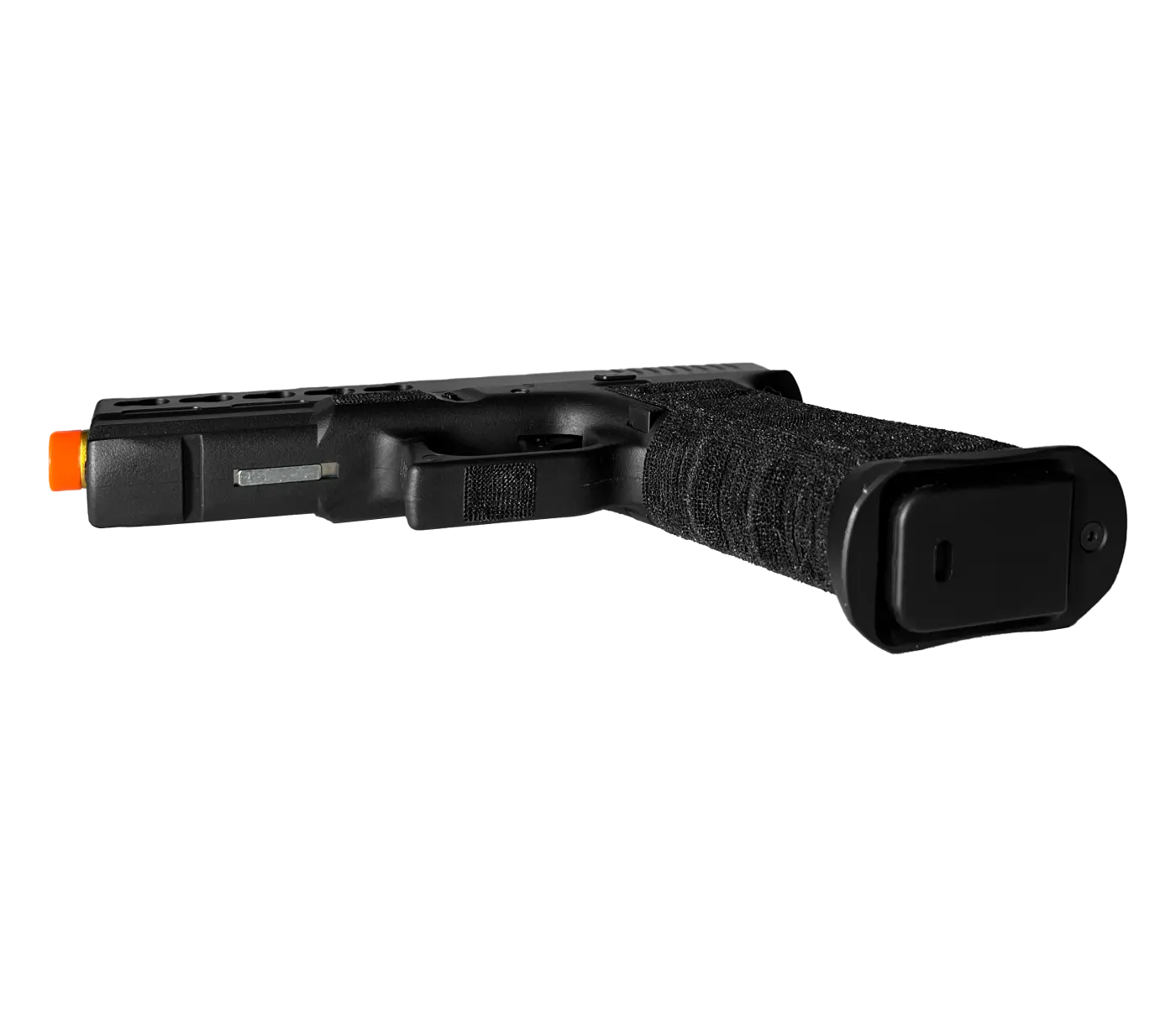 Seu sistema blowback simula o recuo do ferrolho a cada disparo, proporcionando sensação mais próxima de uma arma real.