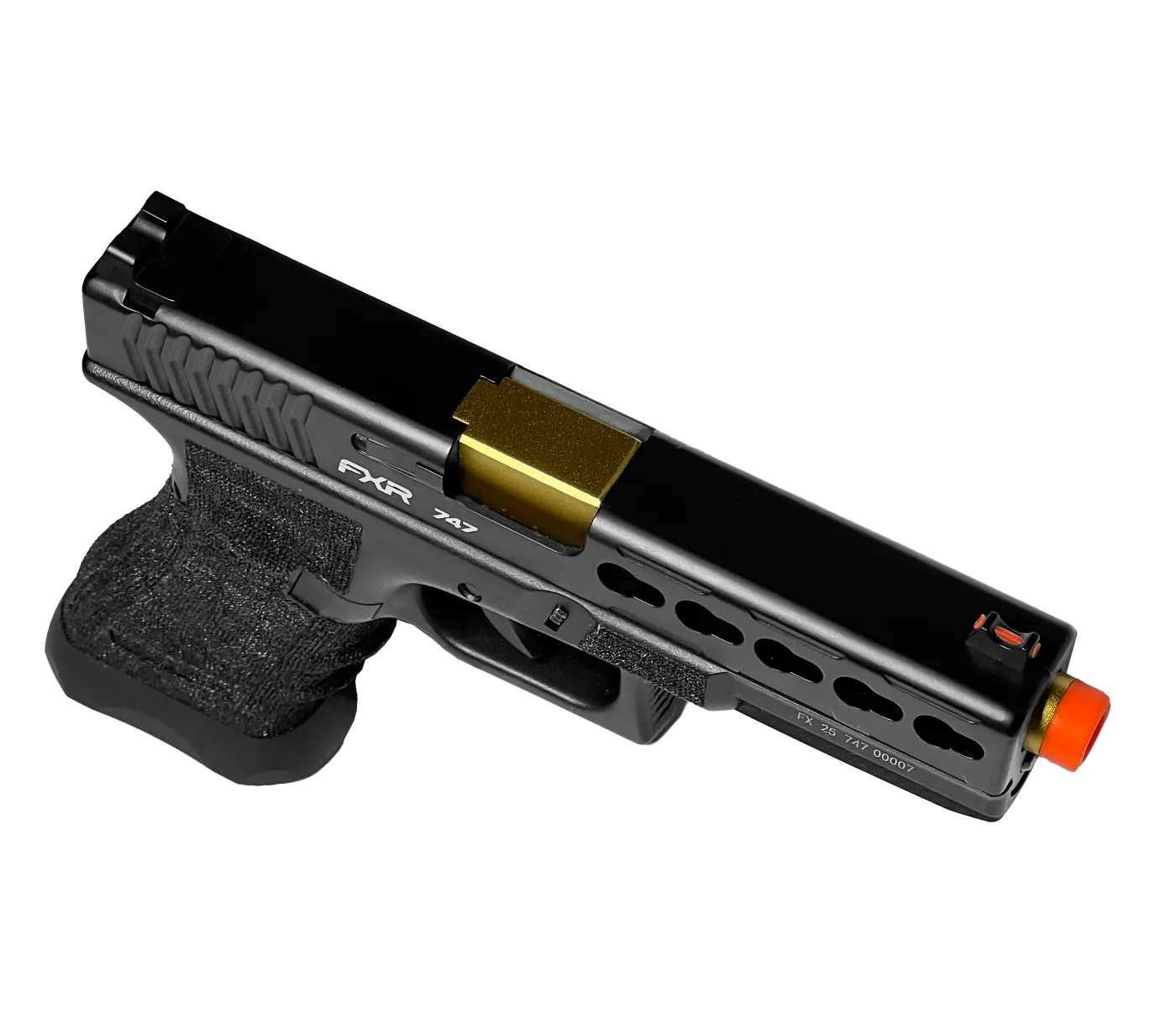 Construída com slide keymode aliviado, no qual da pra ver os detalhes dourados do cano, dando um aspecto personalizado ao modelo 747.