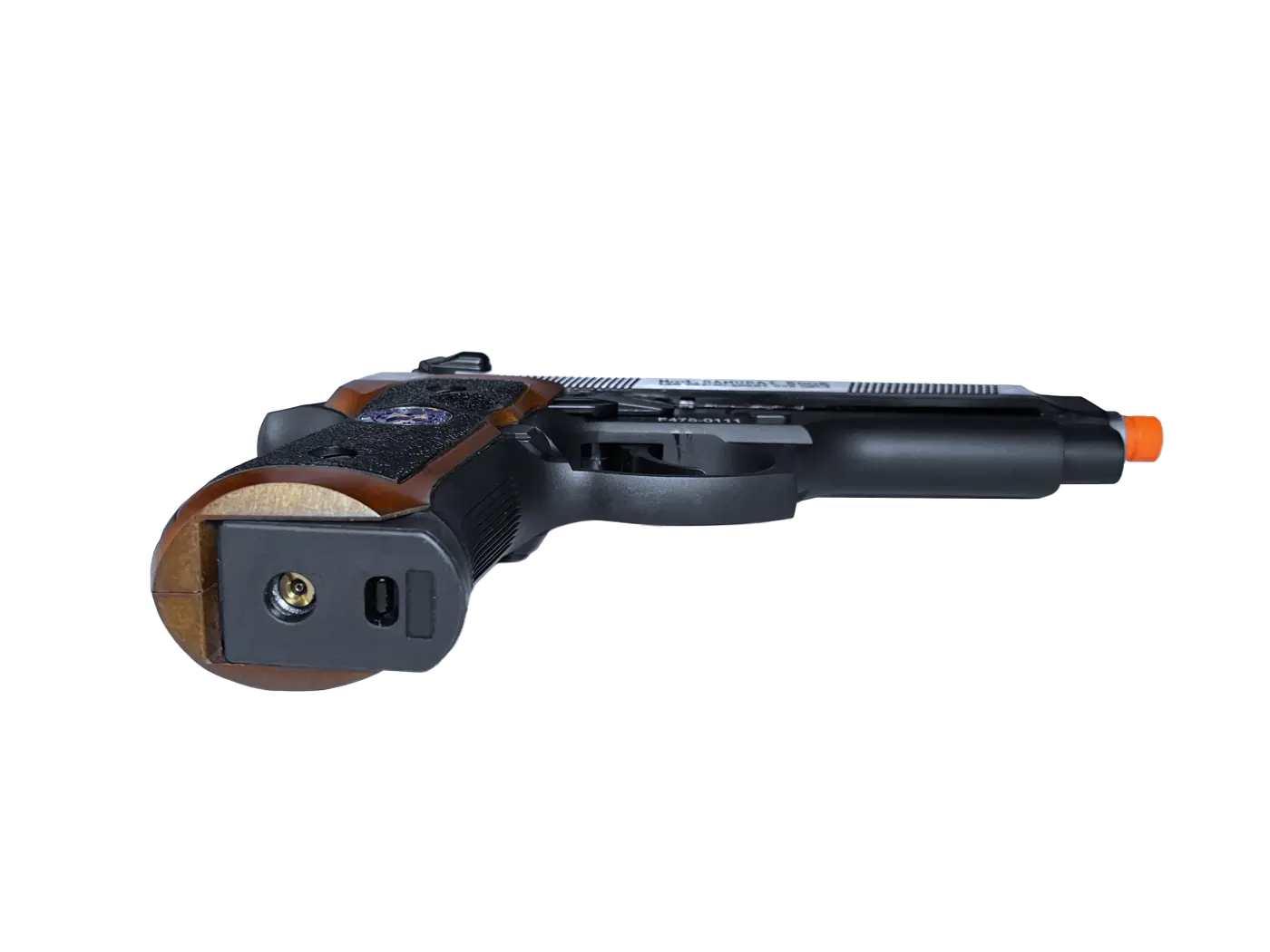 Equipada com sistema blowback a green gás, oferece recuo simulado a cada disparo, tornando a experiência mais imersiva e realista. Seu funcionamento em modo semi-automático proporciona disparos precisos e consistentes, enquanto a velocidade de aproximadamente 300 FPS garante um desempenho equilibrado para diferentes cenários de jogo. O cano de 85 mm, aliado ao hop-up ajustável, permite melhor controle da trajetória das BBs, contribuindo para maior precisão nos disparos.