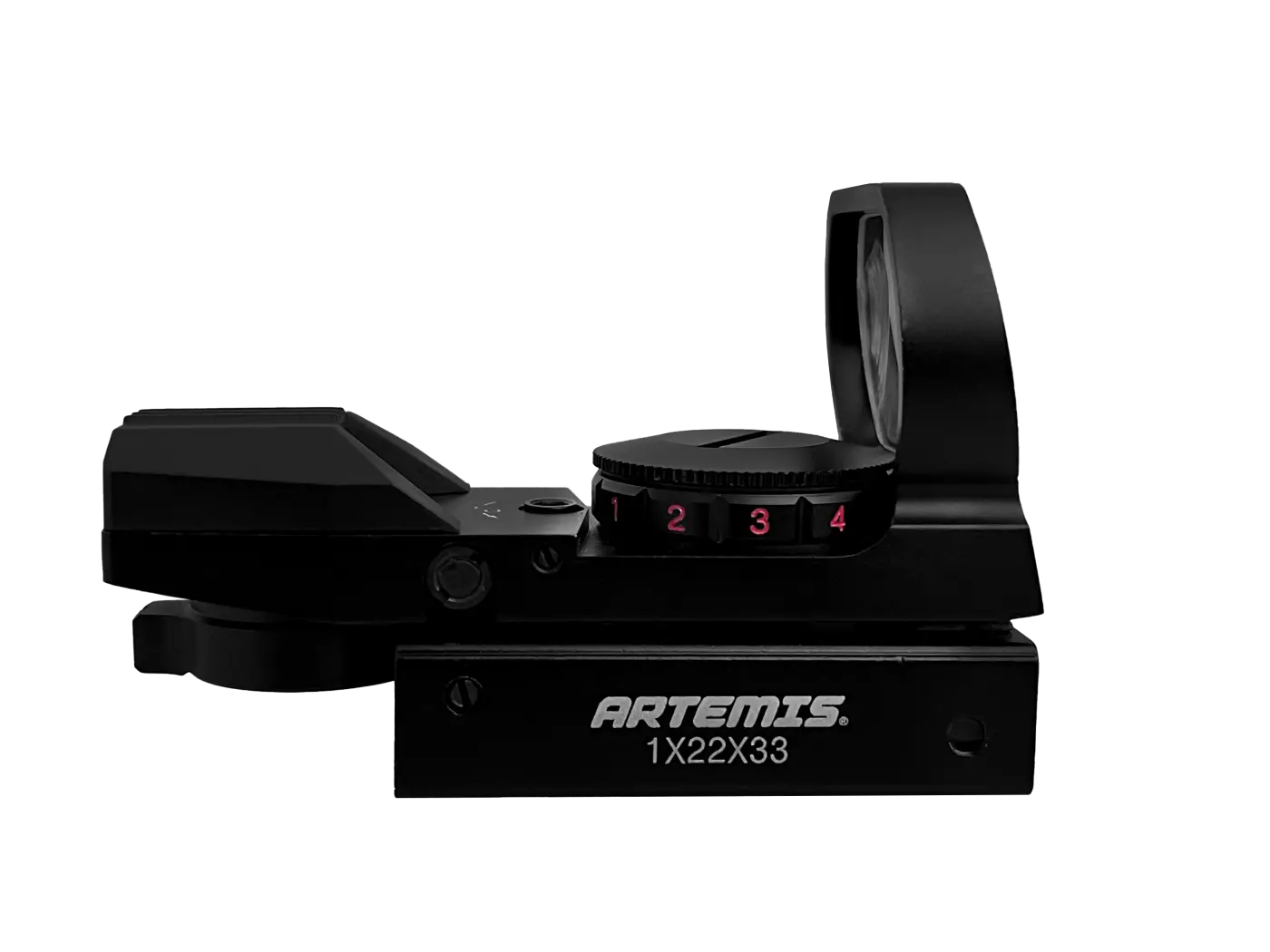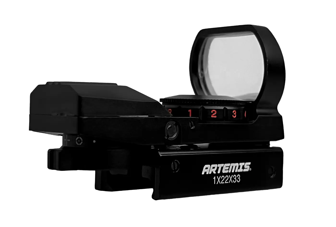 O Red Green Dot Artemis 1x22x33 é uma mira projetada para aprimorar a precisão em disparos rápidos, sendo ideal tanto para tiro esportivo quanto para caça recreativa. Seu design compacto e funcional oferece leveza sem comprometer a robustez, tornando-o uma excelente opção para usuários que buscam desempenho aliado à praticidade.Construído em alumínio resistente, o equipamento possui mount de 22 mm e objetiva de 22x33 mm, proporcionando amplo campo de visão. O ajuste do ponto é feito por parafuso Allen, permitindo precisão nos alinhamentos, enquanto as cores do ponto, vermelho e verde, oferecem cinco níveis de intensidade para adaptação a diferentes condições de luminosidade.