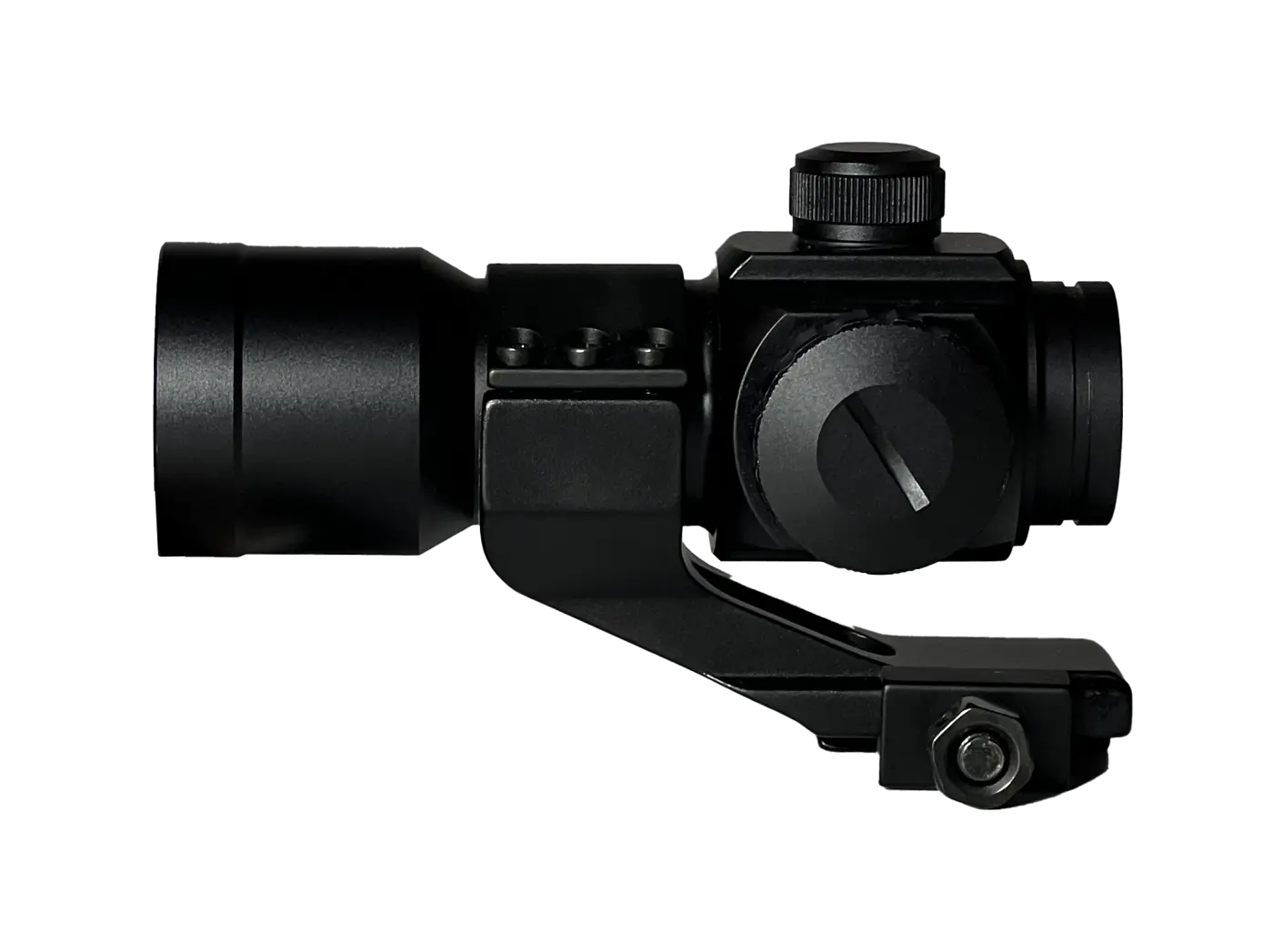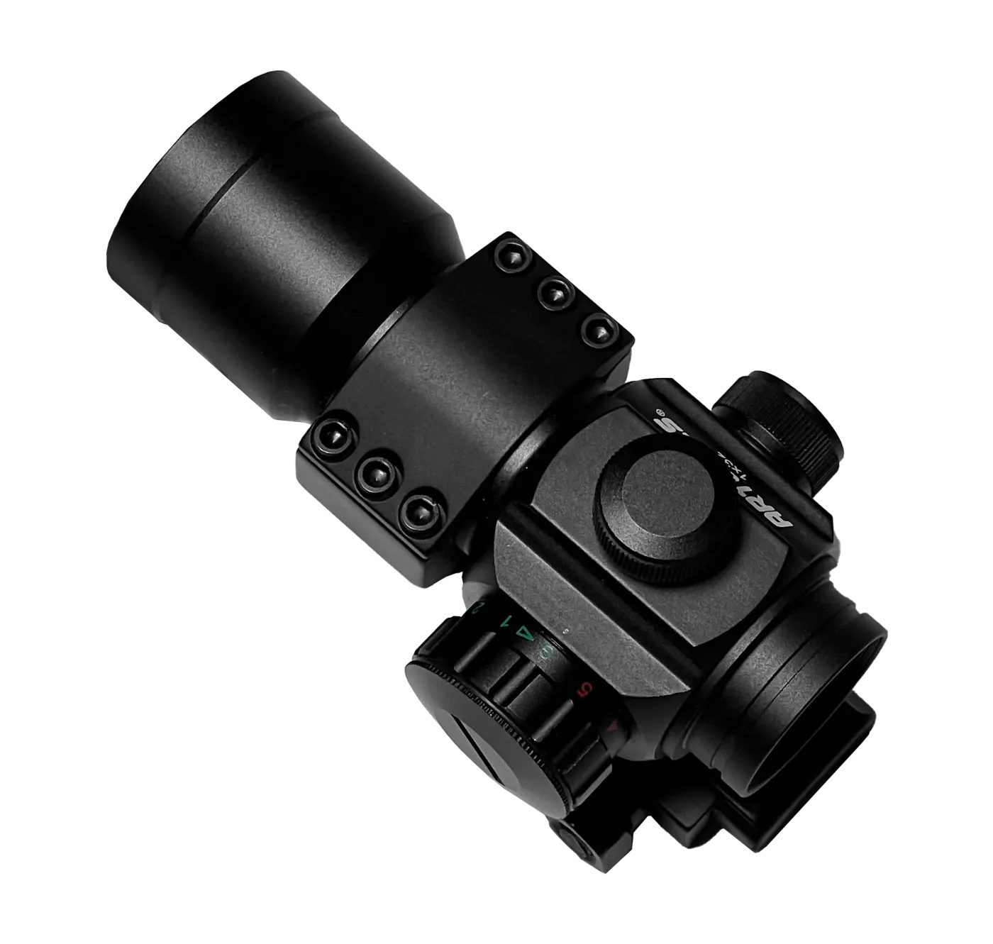 O ajuste do ponto de mira é realizado por parafuso Allen, permitindo ajustes precisos e rápidos, enquanto as cores do ponto, vermelho e verde, possuem cinco níveis de intensidade, que podem ser facilmente regulados conforme as condições de luminosidade.